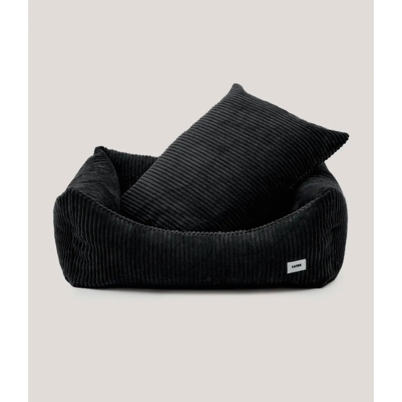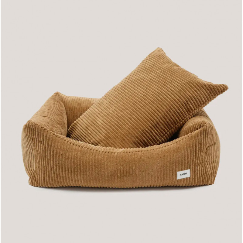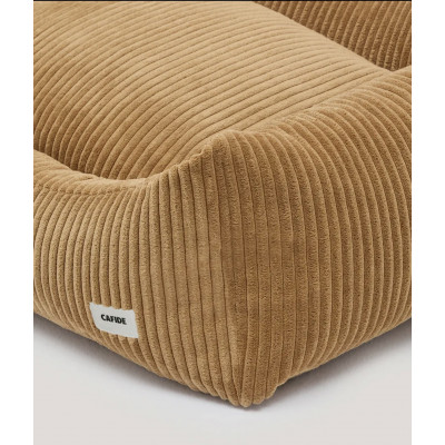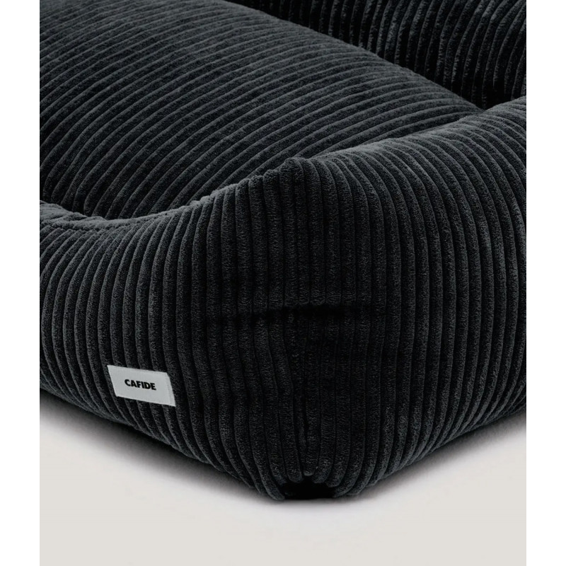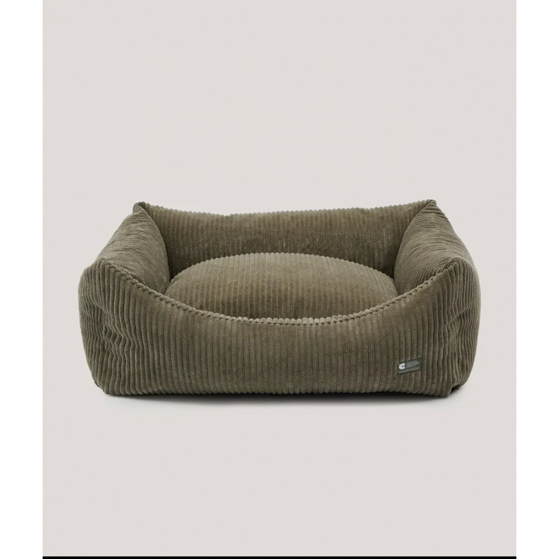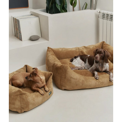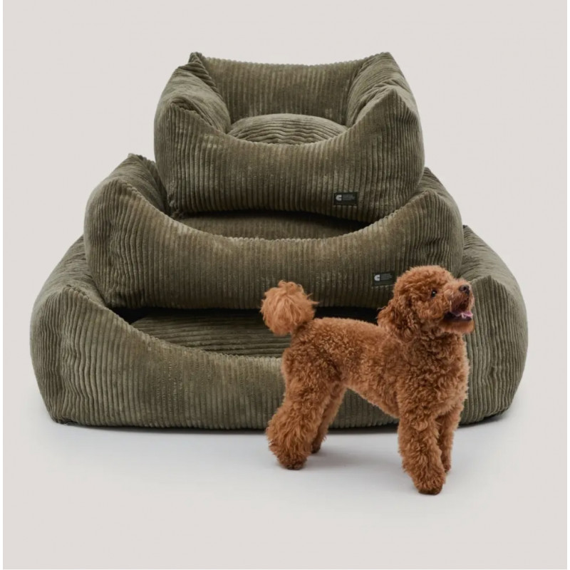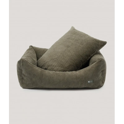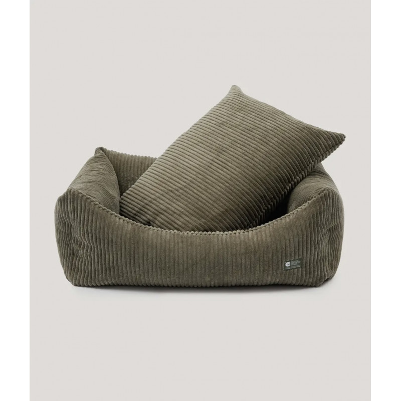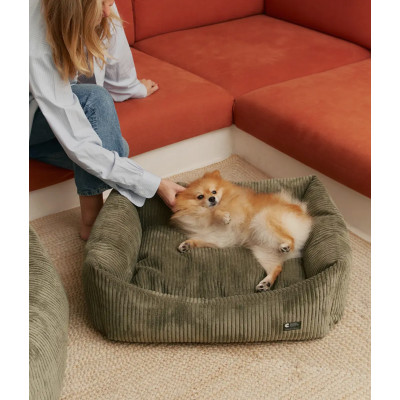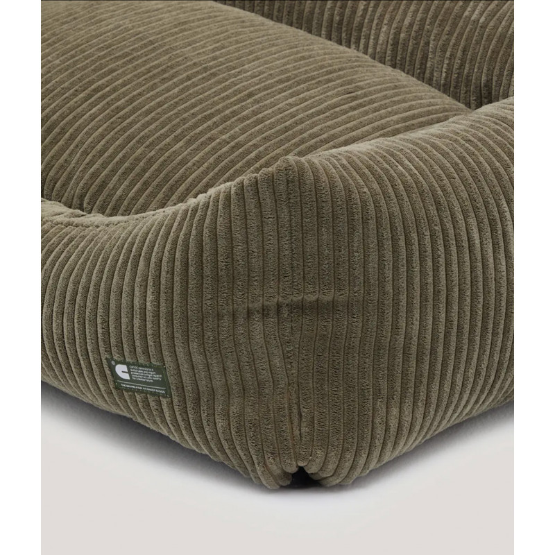 Coussin pour chien en tissu velours côtelé, doux et moelleux, fabriqué en Europe. Le rembourrage est en fibres recyclées issues de bouteilles recyclées. Lavable en machine.