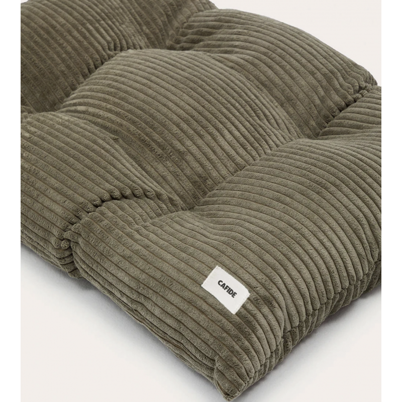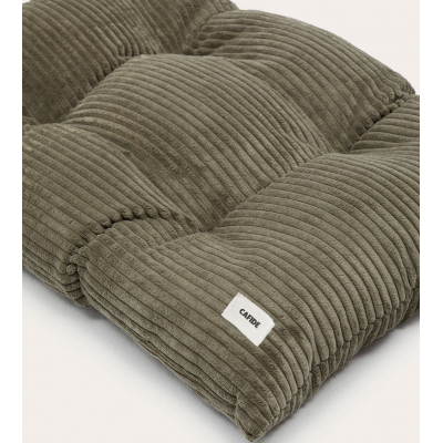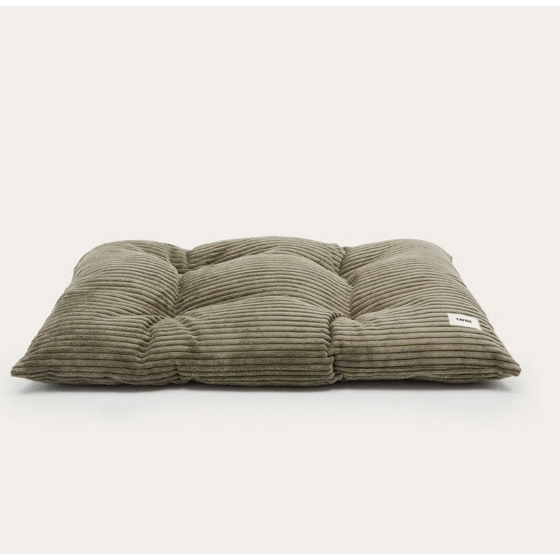Coussin pour chien en tissu velours côtelé, doux et moelleux, fabriqué en Europe. Le rembourrage est en fibres recyclées issues de bouteilles recyclées. Lavable en machine.