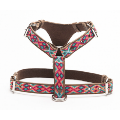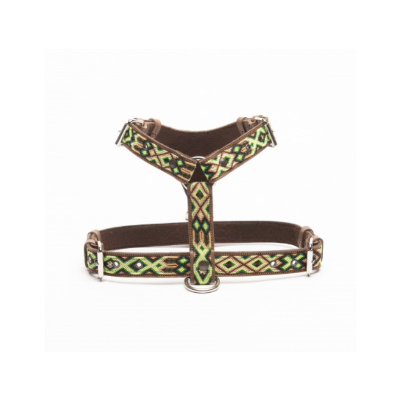 Inspiré par le village pittoresque de Todos Santos, situé en Basse-Californie, ce harnais reflète le charme rustique de ses rues pavées et de ses bâtiments multicolores ornés de cactus verts.