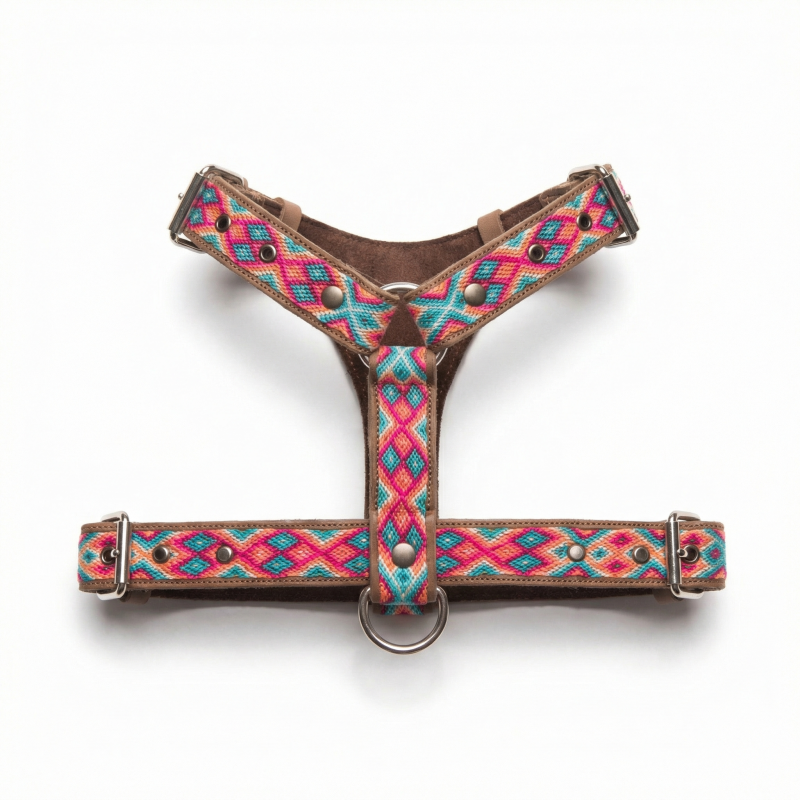Chaque harnais Mexie est fabriqué à la main, avec amour et savoir-faire. Cela signifie que chaque pièce est unique : les couleurs et le tissage peuvent légèrement varier… et c’est justement ce qui rend votre produit si spécial !